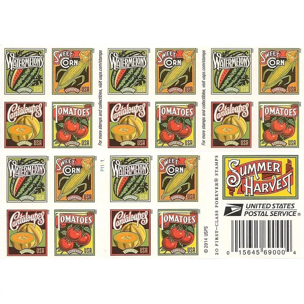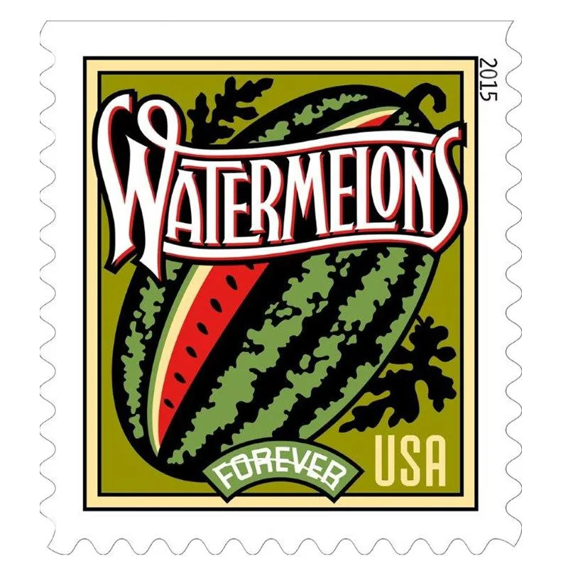 The U.S. Postal Service celebrates a few of those favorites-corn, tomatoes, cantaloupes, and watermelons-with four new stamps. Vintage produce advertising, including 19th- and early 20th-century crate labels, seed packets, and catalogs, inspired these stamp designs.